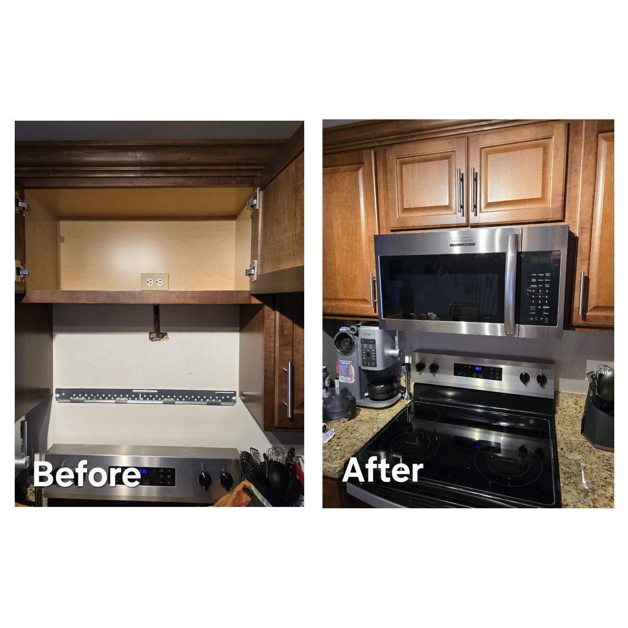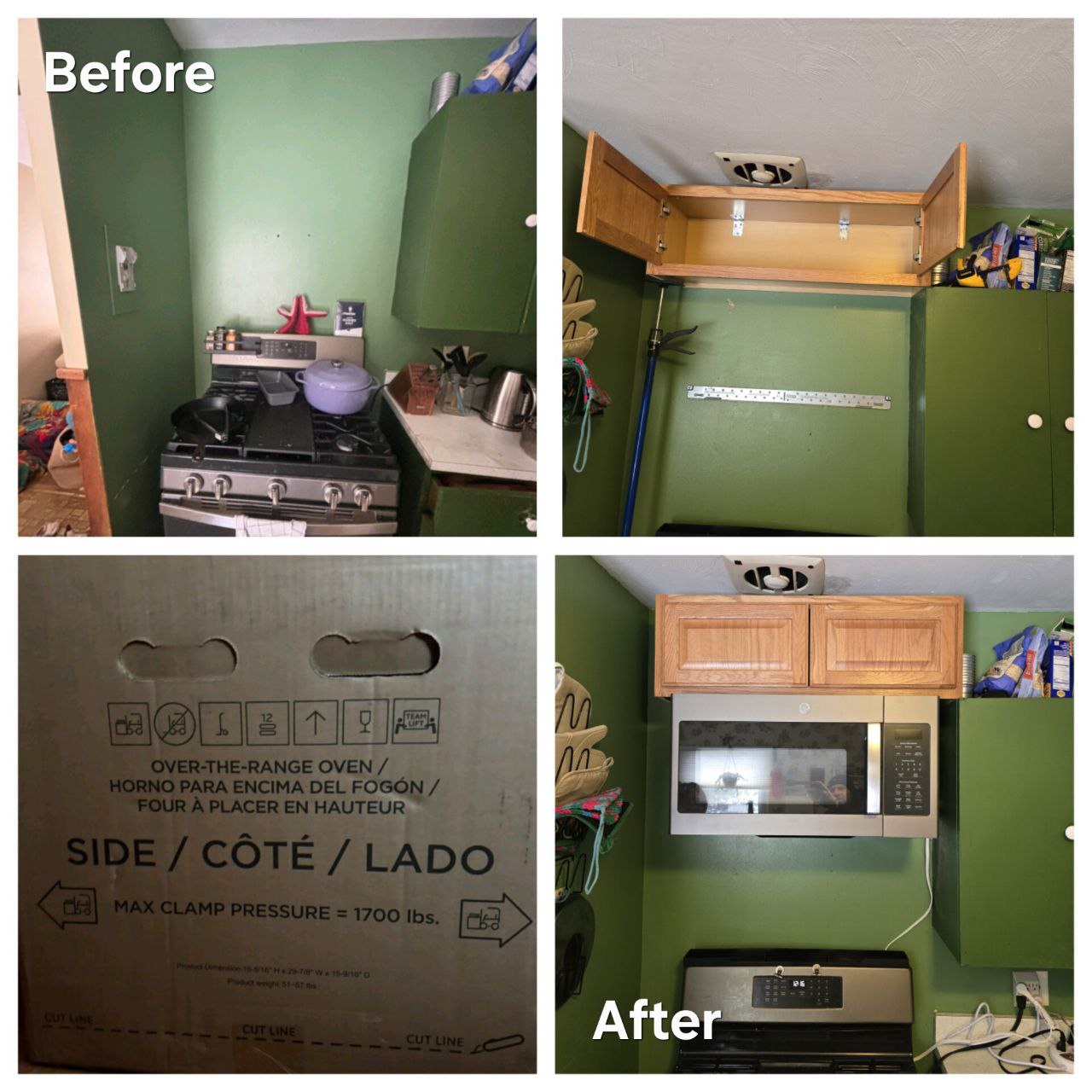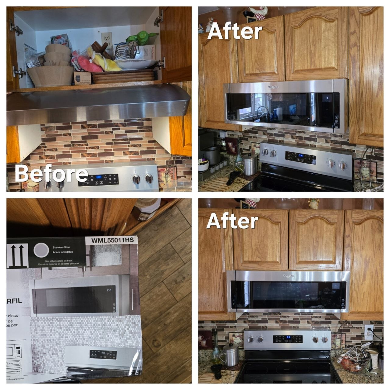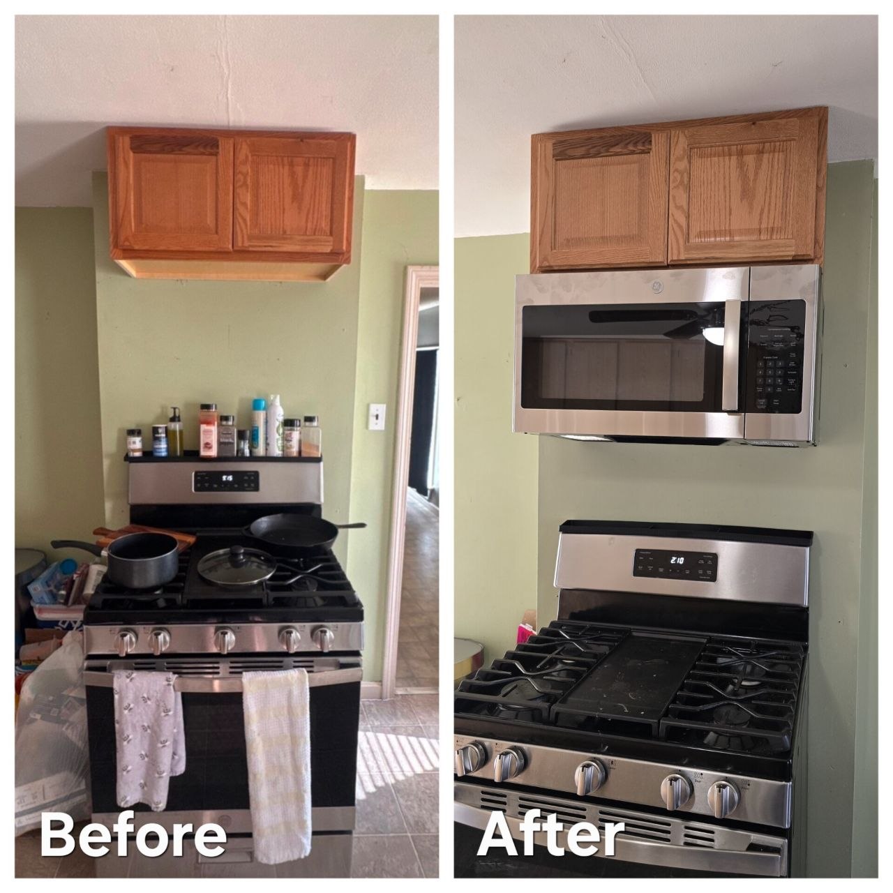 over-the-range microwave installation, dishwasher hookup, washing machine installation, dryer (electric) hookup, refrigerator water line connection, stove/range basic hookup
