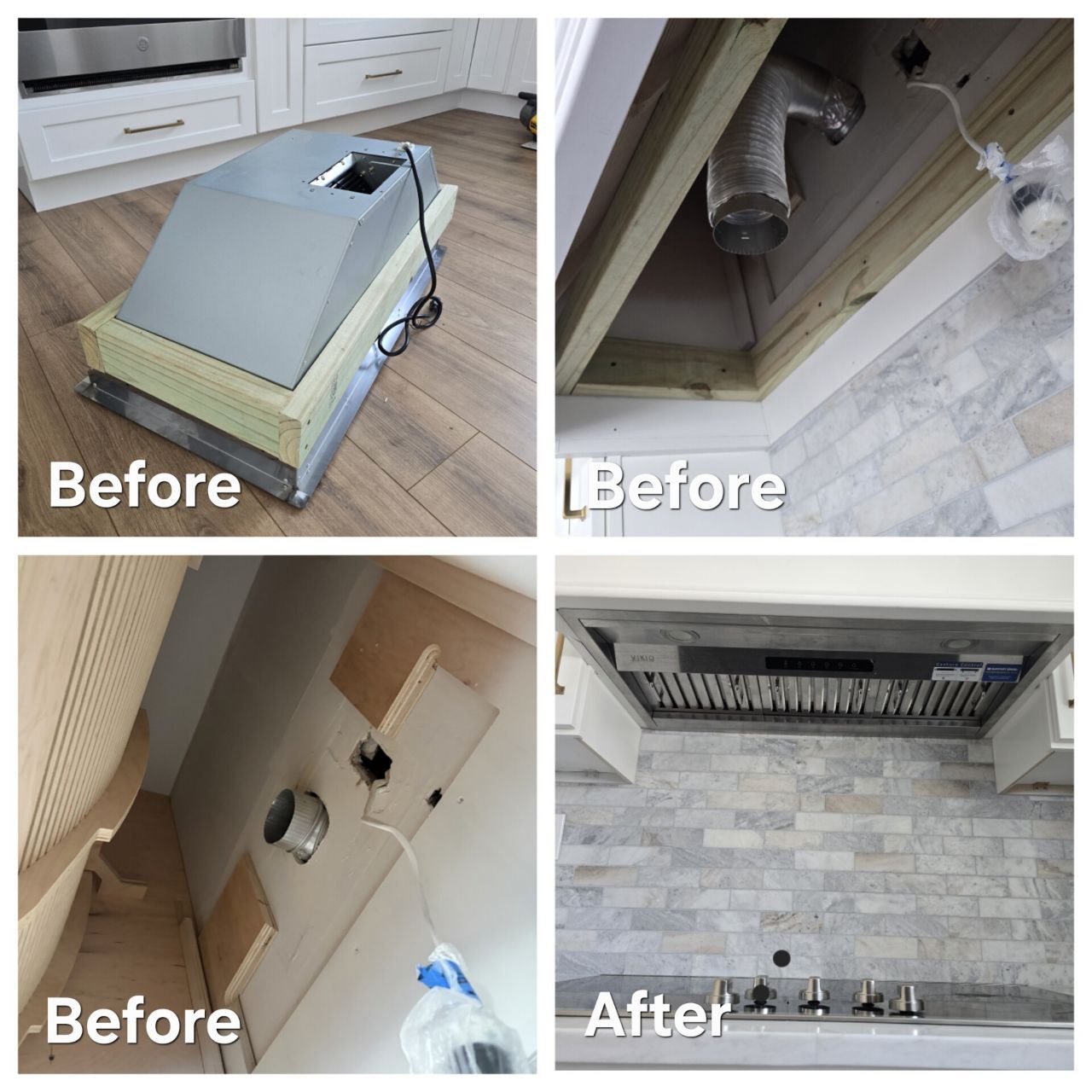Photos of completed work – at the bottom of the page.bathroom exhaust fans, replacement of old units, connection to existing duct, mounting + sealing