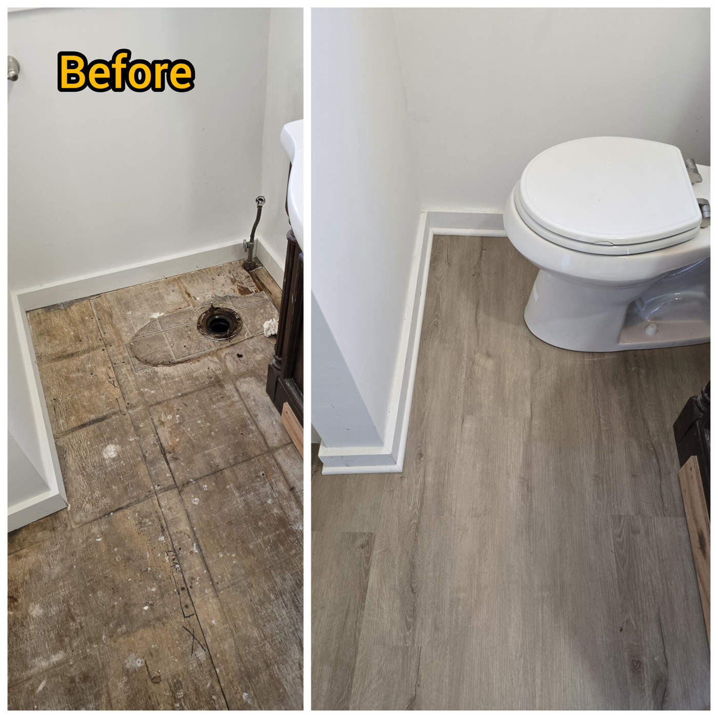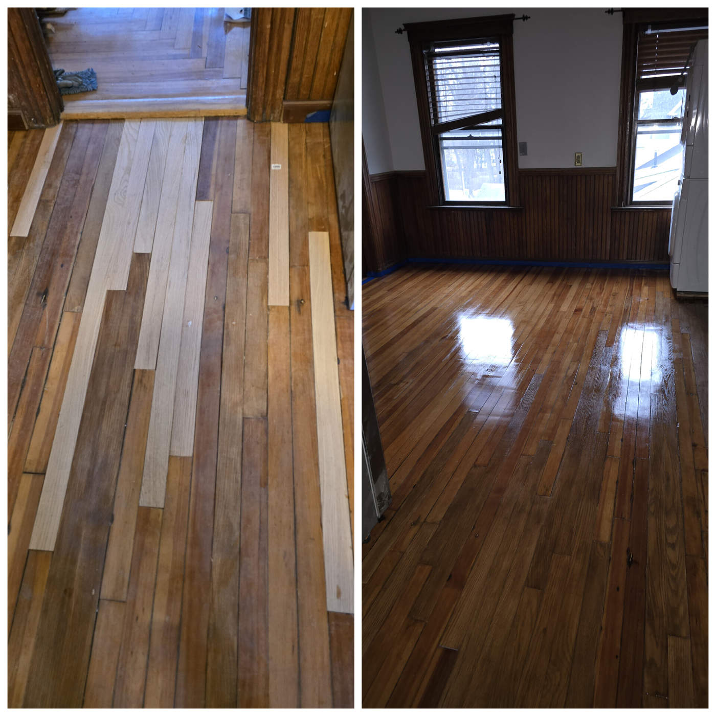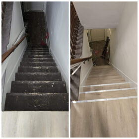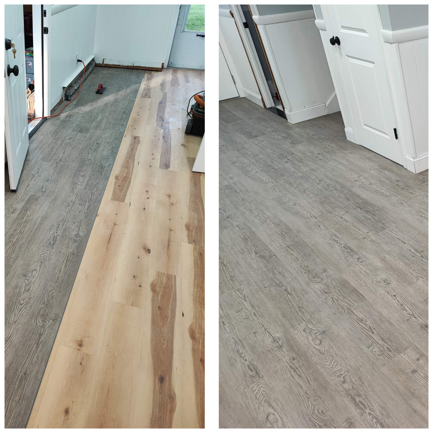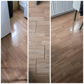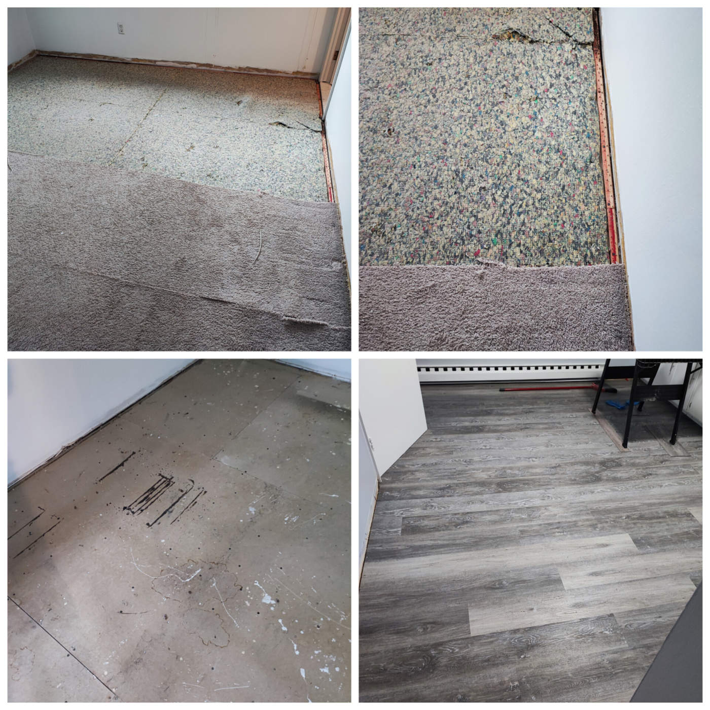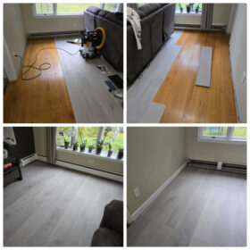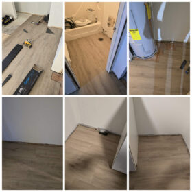 Photos of completed work – at the bottom of the page.laminate / LVP installation, underlayment, baseboards, transitions, small subfloor repairs